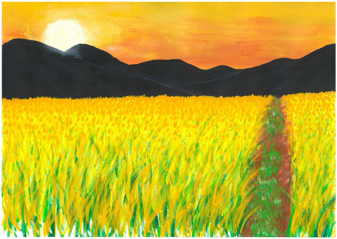夕焼けでかがやく稲 |