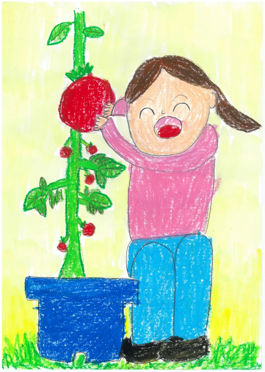 まっかにみのったよ、わたしのミニトマト。 |
