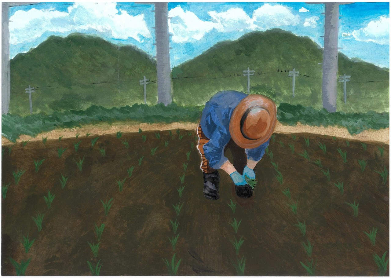 大自然の中で農作業 |