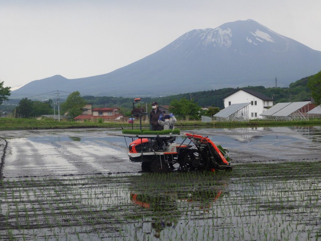 農業体験は本会の新人1人を含む職員3人が、盛岡市玉山の「農業競争力強化基盤整備事業武道地区」のほ場整備を実施した水田で、田植え作業の体験をさせていただきました。