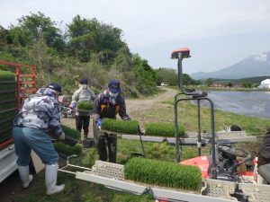 事業を実施した水田は、道路と水田の高低差が小さく、スムーズに苗渡し作業を行えました。また、耕作道は道幅が広いため軽トラックと田植え機のすれ違いがしやすく、水田間の移動が効率的にできていました。ご指導くださった方からは、作業が効率的に楽に出来るようになったと喜びの声が上がっていました。