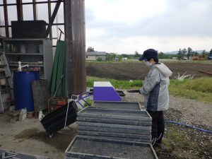 現地での作業は、田植え機への苗渡しや苗箱の洗浄の他、実際に田植え機の運転もさせていただきました。