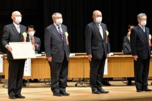 12月22日、岩手県民会館において、『令和4年度いわて農林水産躍進大会』が開催されました。大会では、「岩手県農林水産業表彰」、「いわて農林水産振興協議会会長表彰」、「いわて中山間賞」、「岩手県農地・水環境保全向上活動モデル賞」及び「岩手県アドプト活動モデル賞」の授与が行われ、県内各地から参集した関係者約400名から受賞者へ盛大な拍手が送られました。
