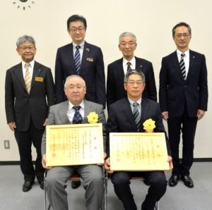 【前列左から:上村勝己 山根農地・水・環境保全向上対策推進協議会代表、阿部宏希 赤沢3区環境を守る会代表