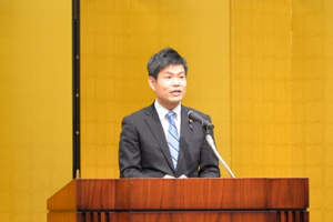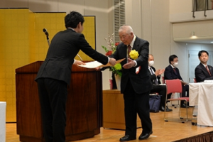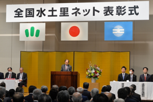 また、農林水産大臣の祝辞として「永年にわたる土地改良区の良好な運営への多大なる貢献と農業農村整備事業への尽力に深く感謝を申し上げる。本日の表彰が、全国津々浦々で地域農業の振興に尽力されている方々の励みとなることを願う。」と勝俣孝明 農林水産副大臣が代読しました。