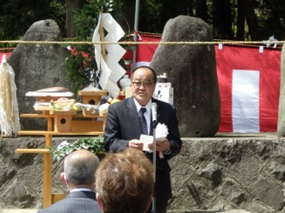 千田理事長は、「私は、今年4月に理事長に就任し、初めての放水式でありますが、仕事は厳しく、組合員の気持ちに寄り添い、真心こめて、総代・役職員と相談をし、関係機関の皆様と協議をしながら運営を進めてまいりたいと考えております。胆沢川神社のご加護の元、五穀豊穣を願い、組合員の皆様が無事、出来秋を迎えられるよう、役職員一同、全身全霊で取り組んでまいります。」と挨拶しました。
