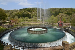 参加者は、円筒分水工から放水された水と勢いよく上がった大噴水を前に、豊穣の秋を迎えられることを祈願していました。