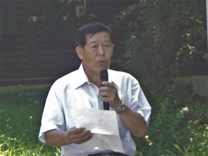 学習会の冒頭、挨拶に立った松川土地改良区の髙橋光幸理事は、「今日は、田んぼにどのように水が流れているのか学んでいってほしい。学習会の後には、ニジマスのつかみ取りがあるが熱中症と怪我に十分気を付けて楽しんでほしい。」と述べました。