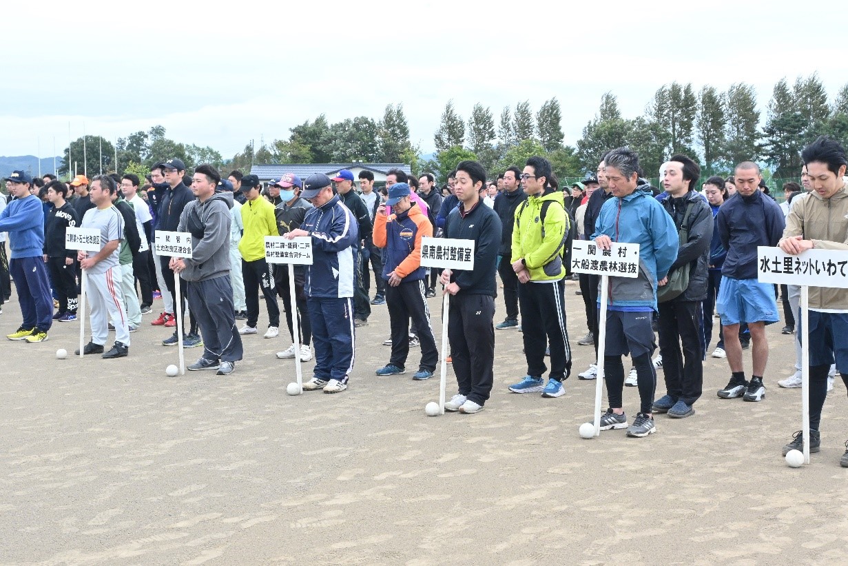 本会は、10月3日、「令和6年度水土里ネット親睦ソフトボール大会」を花巻市「石鳥谷ふれあい運動公園」で開催しました。県内の土地改良区、県のNN機関など13チーム222名が熱戦を繰り広げました。