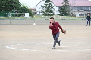 【力投する小原雅道理事長(石鳥谷東部・大迫・猿ヶ石北部チーム)】