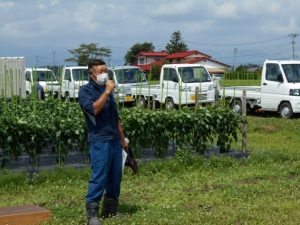 また、「実際圃場を見ると、法人の努力がわかって大変勉強になった。」や、「ピーマンは設備投資や人手の確保が難しいと考えていたが、実際体験者の話を聞くとハードルがぐっと下がり、まず農協に相談して始めてみようと思った。」と感想をいただくなど、高収益作物導入に当たっての検討材料として、充実した圃場研修会となりました。