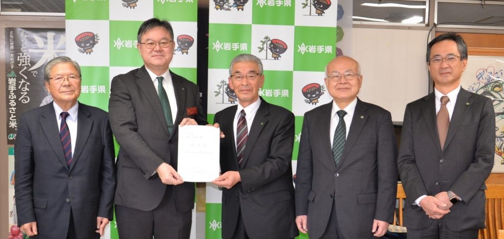 本会は12月22日、 大宮惇幸 会長と小野寺道雄 副会長、及川哲朗 副会長が、岩手県に対し、「農業農村整備の着実な推進に関する要請」として「令和4年度当初予算の確保、更なる水田の利活用に向けたほ場整備の推進、土地改良区の運営体制強化に向けた取組の強化」の3点について要請を行いました。(添付の要請書参照)